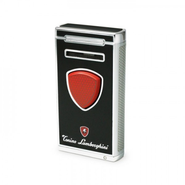 Le briquet torche Lamborghini Pergusa noir présente un corps en titane poli recouvert d'une laque noire brillante.